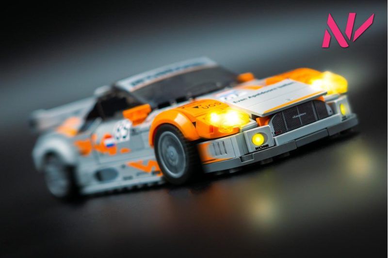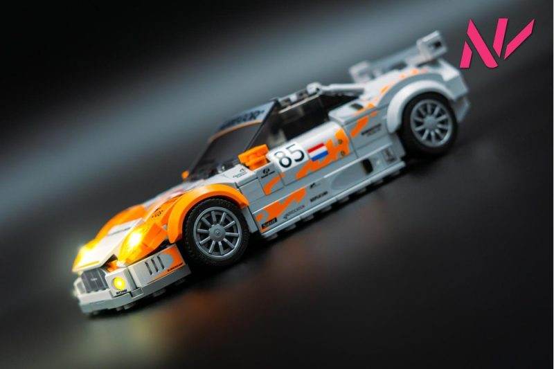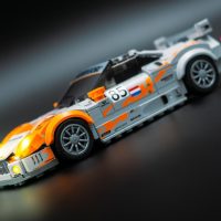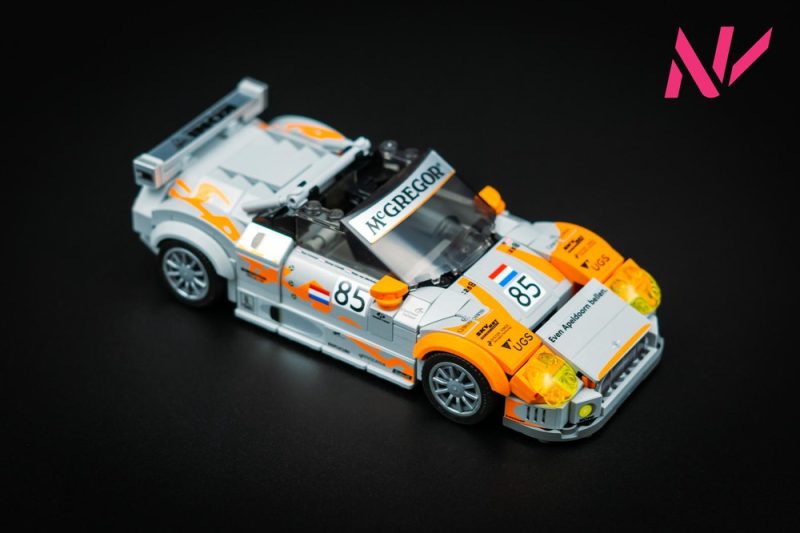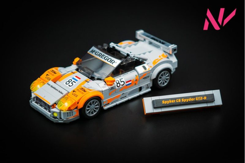 The model is similar to my standard LEGO Spyker C8, but it received quite some changes in the form of: a spoiler, racing interior and flared wheel arches.